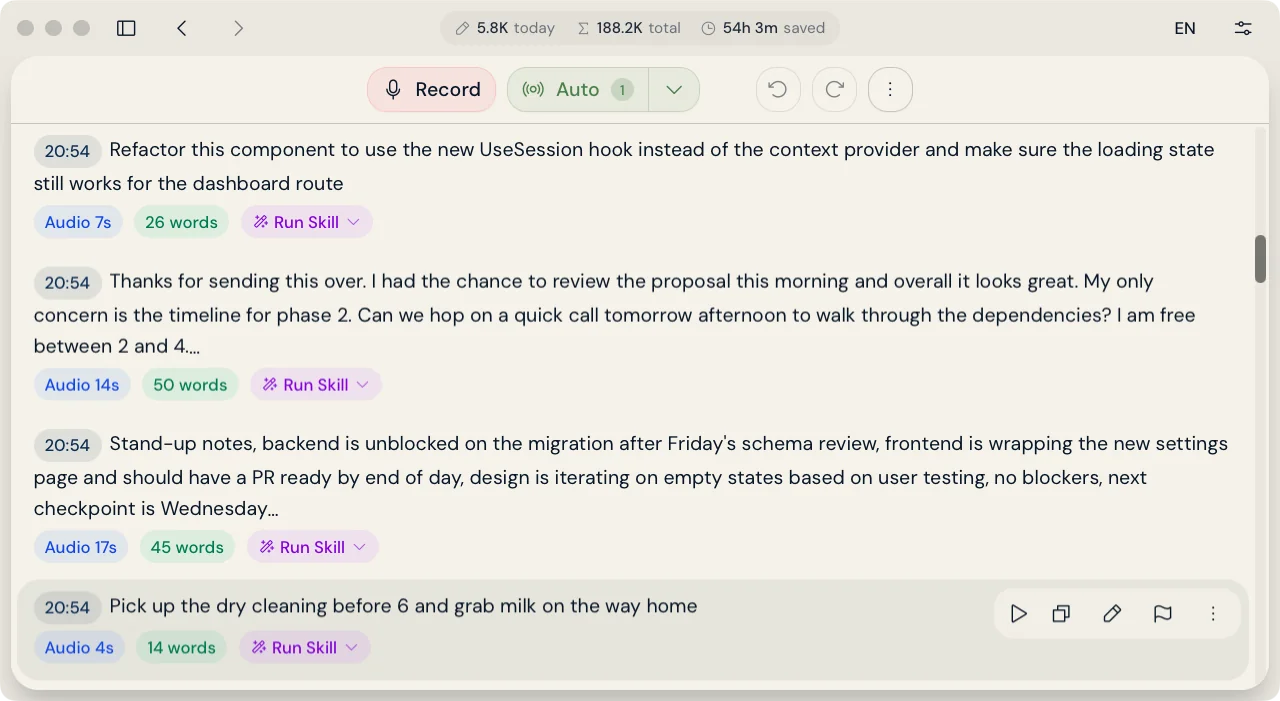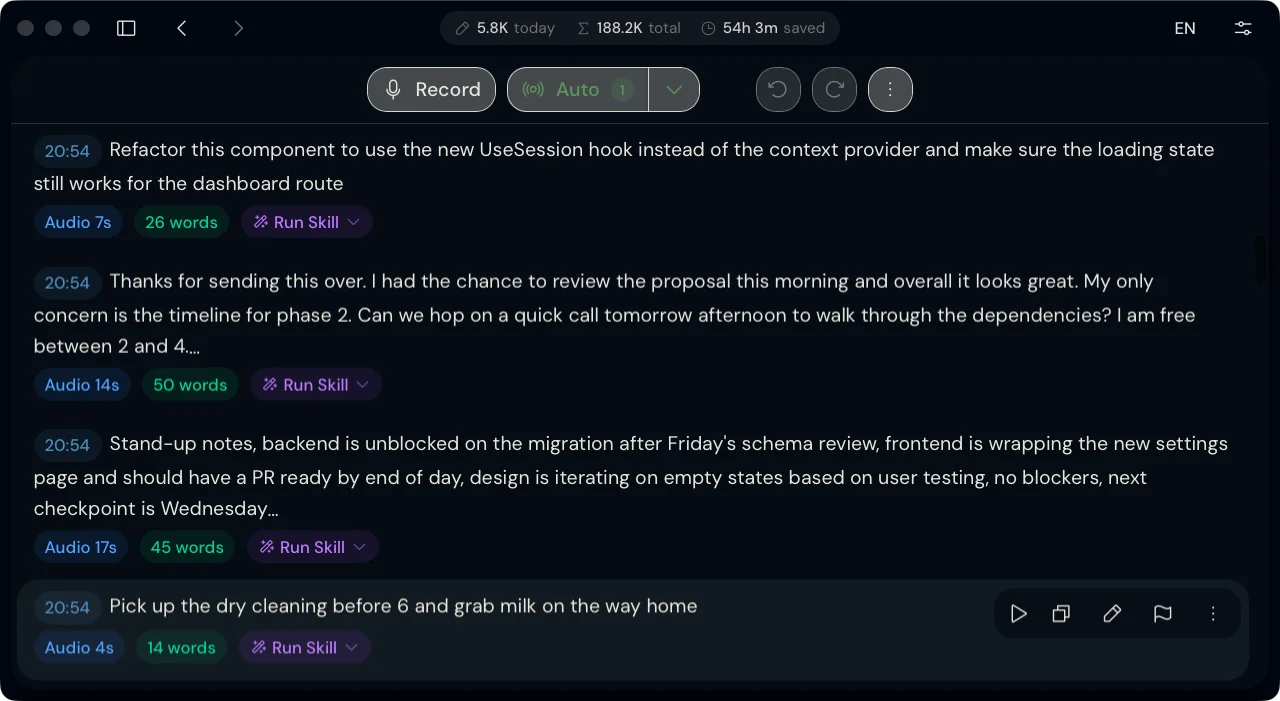 Dictation, language intelligence, and AI processing that fits your workflow.